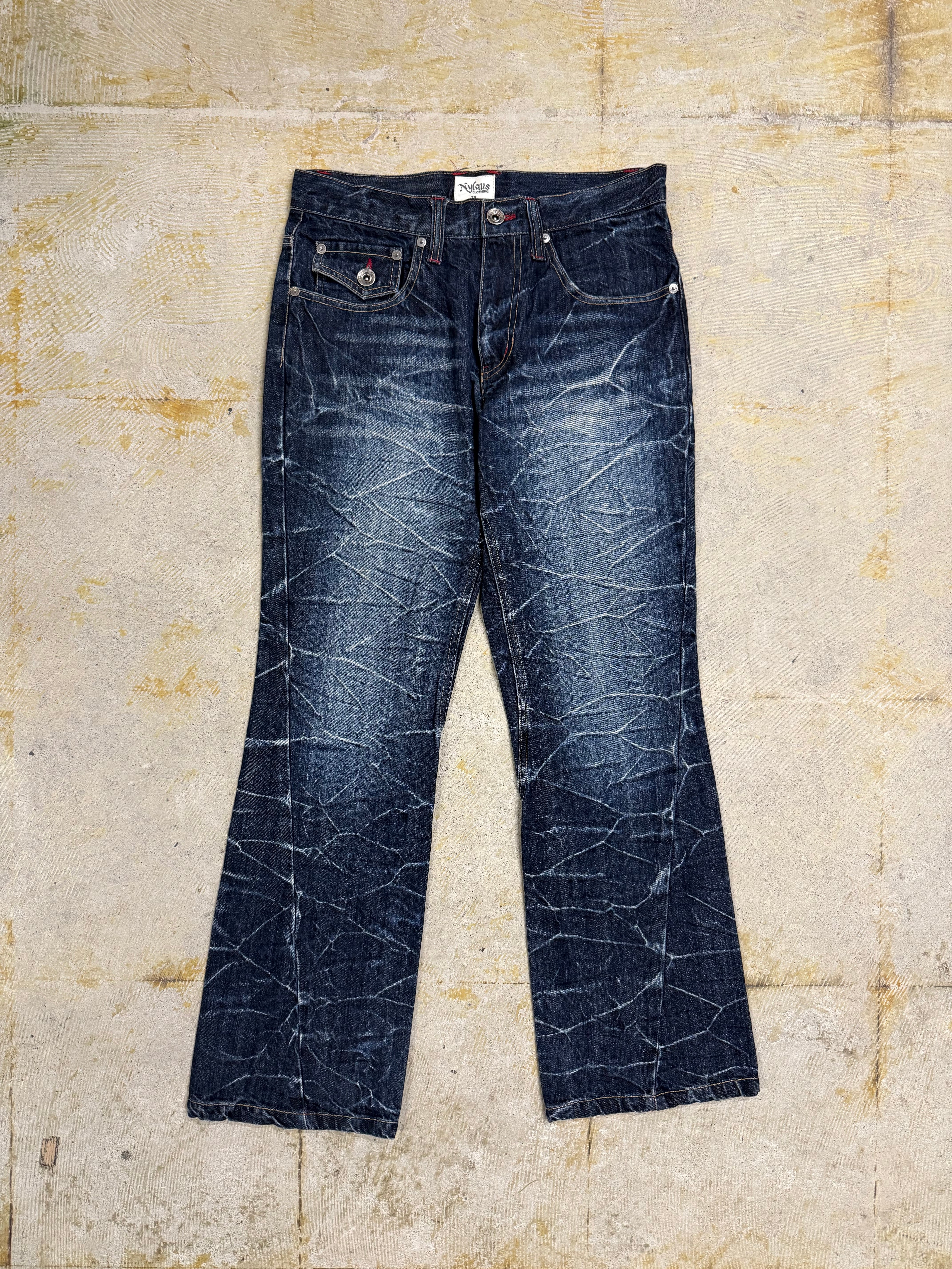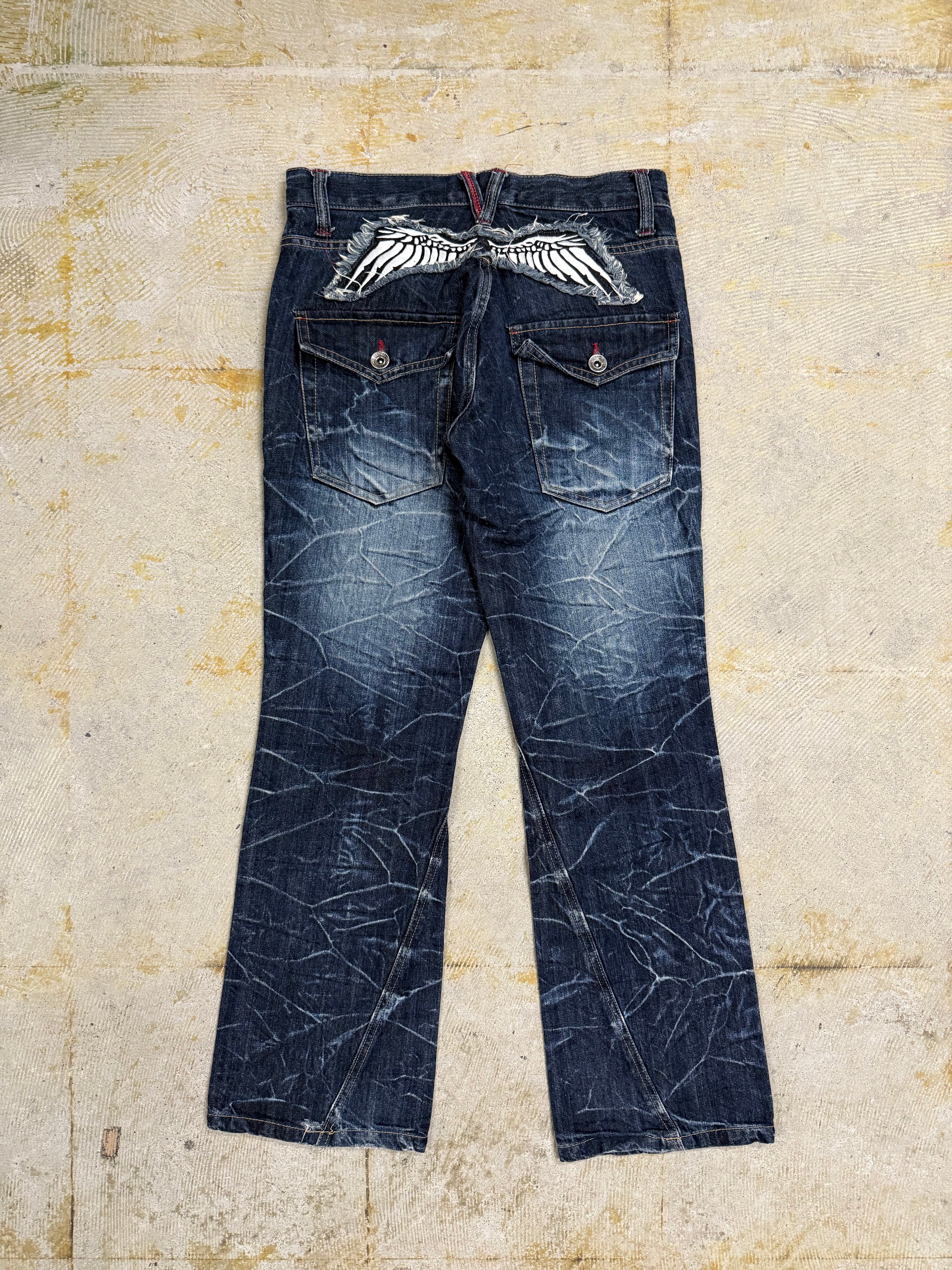 feather design flare denim pants