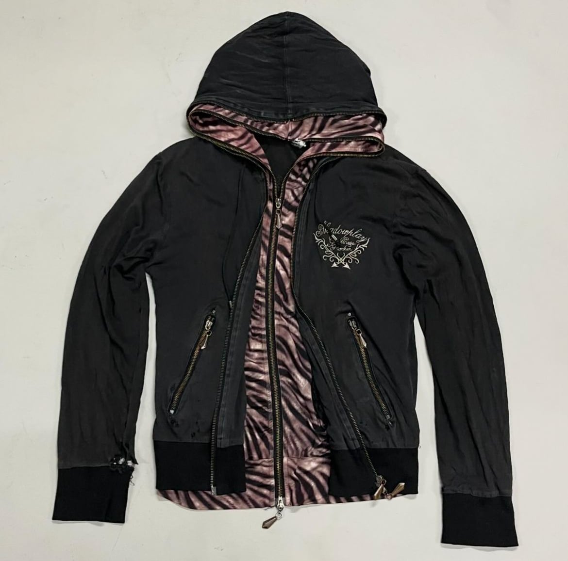 00’s design layered double zip hoodie