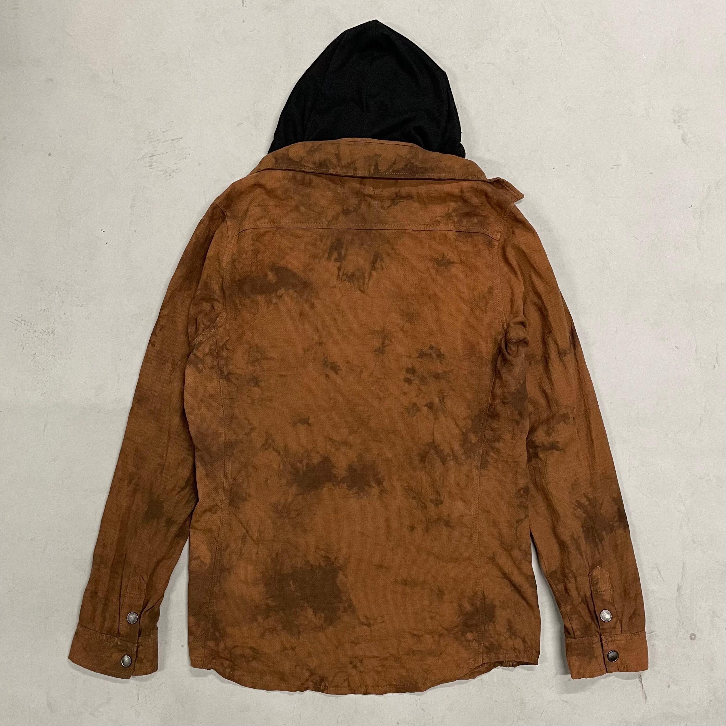 in the attic Tie-dye layered hood gimmick shirt jacket